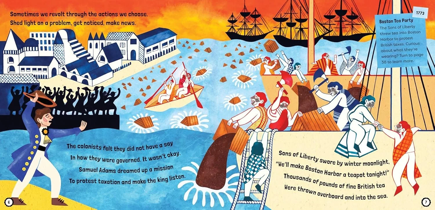 "As the country commemorates Lexington and Concord and the American Revolution, author Rachel Katz and illustrator Sophie Bass's fact-filled and delightfully rendered picture book shows how 25 moments of protest, resistance, and revolution led to victories won by the same kind of grit and risk-taking of the Minutemen 250 years ago—emancipation from slavery, women's rights, safe foods, environmental protection, and minority voting rights."
